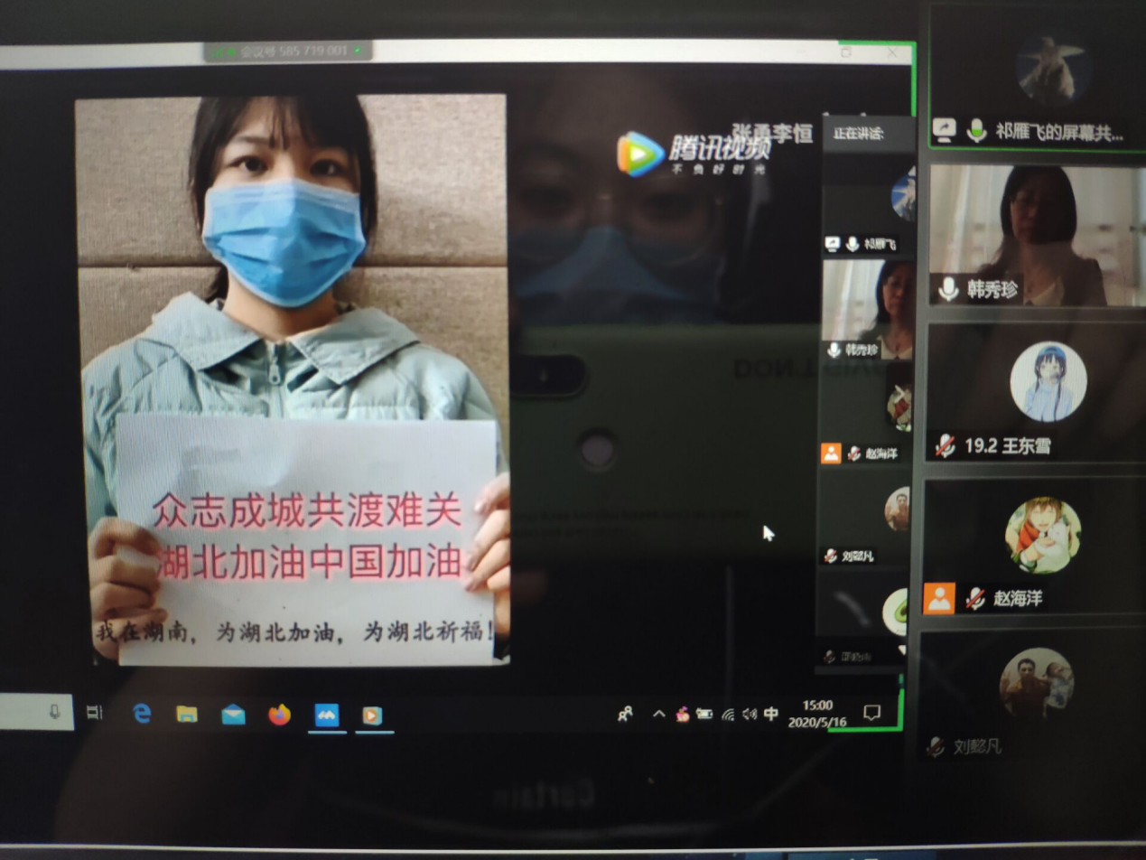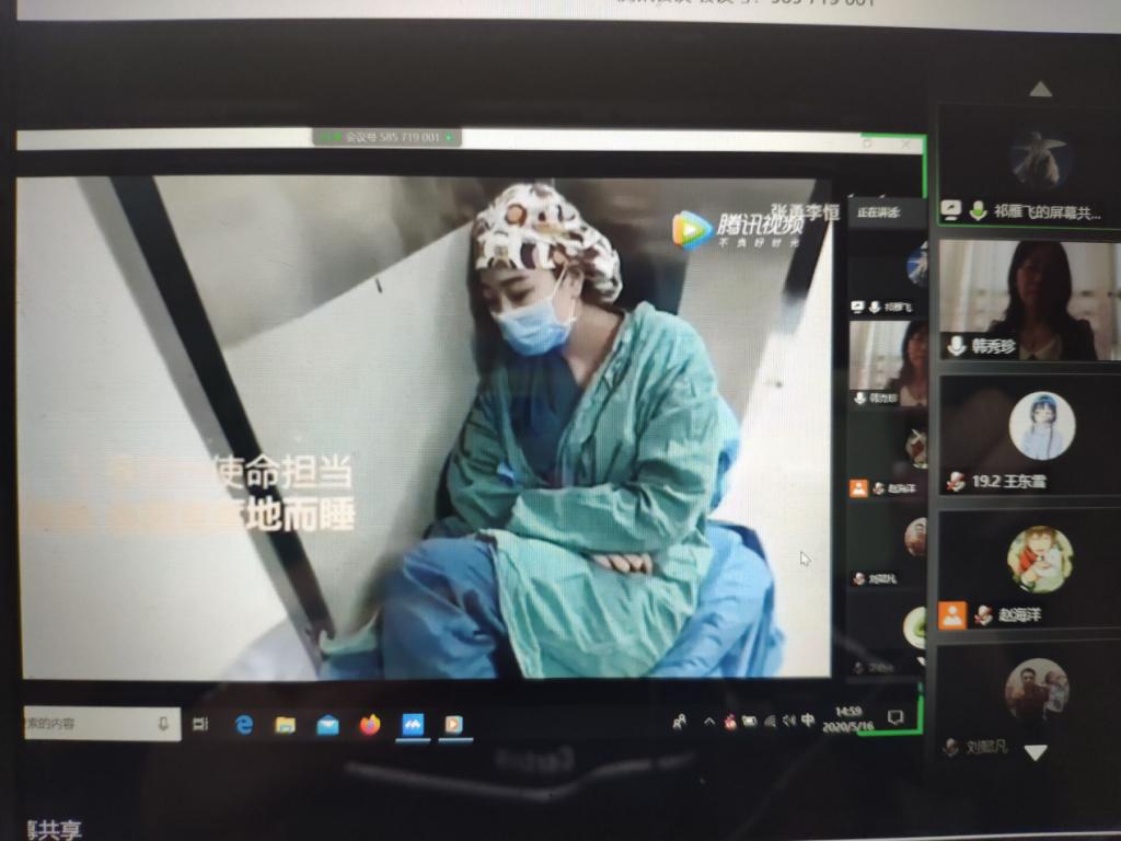 最后,团支书祁雁飞带领同学们开展了“五四精神,青春战疫”主题团日活动。同学们共同学习了习近平总书记就当前疫情防控和重点工作进行再部署会议的重要讲话精神,并观看了有关疫情期间感人事迹的视频。