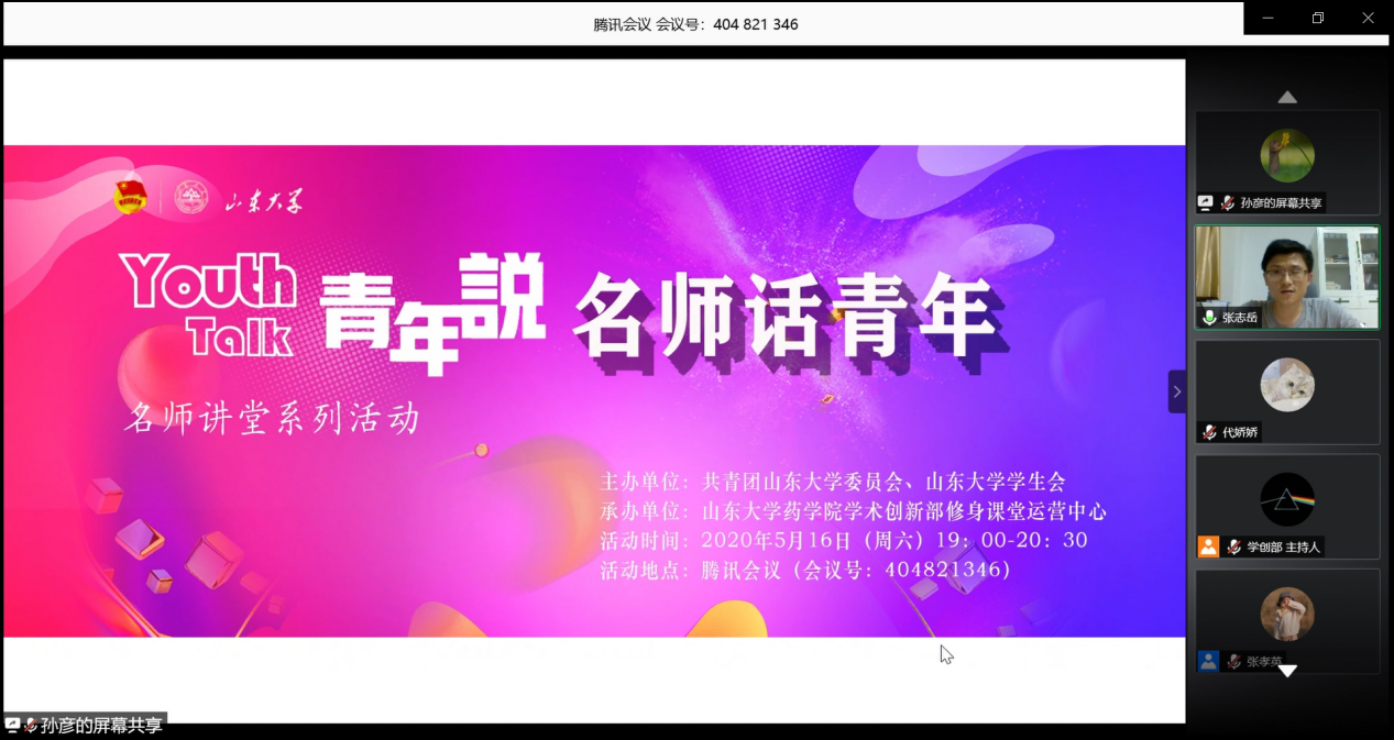 2020年5月16日,修身课堂“Youth Talk”青年说活动于腾讯会议线上平台举办。伟德BEVlCTOR1946药剂学专业博士生导师张志岳教授从老员工活、就业经历、科研工作等方面分享了自己的成长经历。伟德国际1946官网全体本科生参与了本次活动。