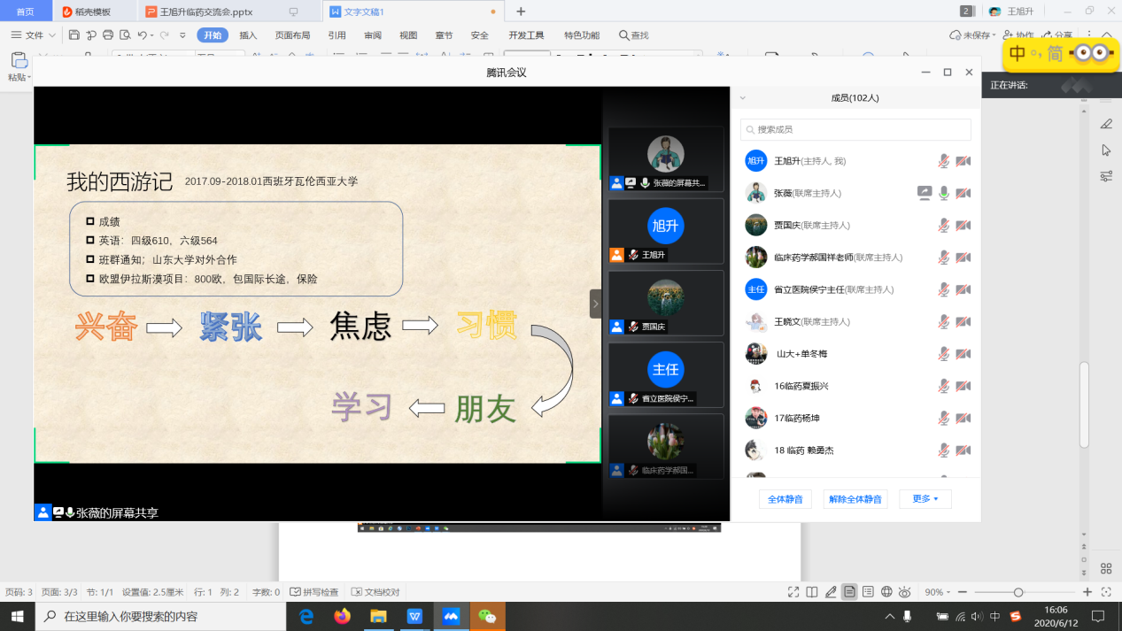 首先,王晓文以“不悔过去、不畏将来”为主题,围绕自身经历为同学们提出了关于考研、出国等方面的建议,鼓励同学们勇于尝试,不要安于现状,学会合理规划时间,提高学习效率;接着,王旭升则针对实习做了分享,提醒同学们珍惜实习、重视实习,利用实习找问题、找差距,以岗位胜任力为导向在实习中锻炼自己的实践能力,切勿好高骛远,忽视劳动的价值;之后,张薇以“想做就做,大胆试错”为主题,同样围绕自己丰富的学习、出国、参赛等经历,鼓励同学们不要妄自菲薄,利用大学时光自信地尝试自己感兴趣的事情。会议最后,郝国祥老师、侯宁主任分别做点评:郝国祥老师提醒同学们要注重全面发展,合理安排学习时间,在需要专心学习的时候切勿心猿意马;侯宁主任总结了本次会议的主要内容,对参会的同学们寄予殷切的期望,鼓励同学们在国家重视科技发展的大好形势下,认真学习,多多实践,成为优秀的药学人。