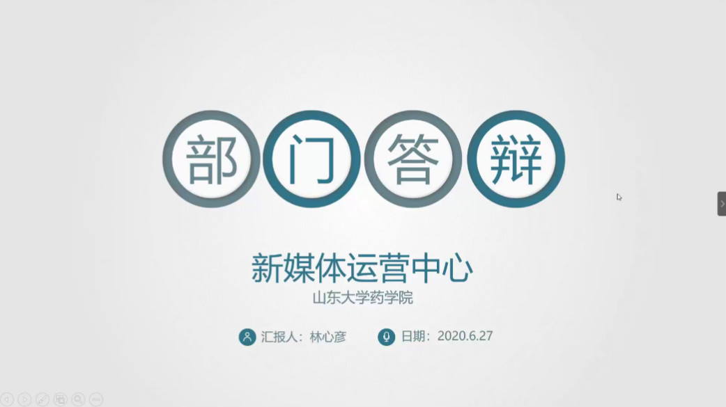 答辩会上,各部门代表按照顺序依次进行答辩,答辩人利用PPT就部门建设、工作开展情况、成果展示、发展规划等方面进行交流。社团工作部大胆创新,充分利用网上平台,探索“诚信状”主题活动的新思路;志愿者工作部身处服务第一线,打造“药飞”等精品志愿服务项目;办公室讲效率、讲实干,发布通知和组织活动两不误,全面落实员工工作;体育部实时创新,开展“平板支撑”、“仰卧起坐”等线上体育比赛;文艺部组织文化艺术节、元旦晚会等活动,丰富校园文化生活;社会实践部、学术创新部积极创新活动形式,理论实践相结合,助力同学成长;新闻中心、新媒体运营中心脚踏实地,切实做好各部门和各班级的宣传报道任务,展现药院风采;宣传部绘制画板,制作幕布、剪辑视频,全力配合各部门工作;生活权益部秉持严谨、效率、进取等原则,为同学们追踪解决生活问题,并立志做好接下来的复学复课和迎新工作。对于评委提出的问题,答辩代表们冷静对待,从容不迫地一一作了解答。答辩结束后,各评委进行打分,最终结果近期将在院网站公示。