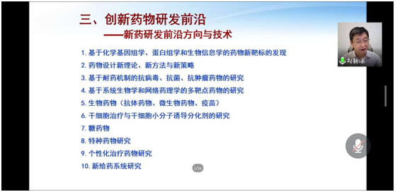 7月1日,伟德国际1946官网“药物领域前沿发展与关键技术”研究生暑期学校第一讲采取线上形式举办。伟德BEVlCTOR1946校聘二级岗教授、山东省医学领军人才、现任伟德国际1946官网经理、药物化学研究所所长、无机化学教研室主任刘新泳围绕“医药产业发展现状与新药研发的前沿”展开专题讲座。
