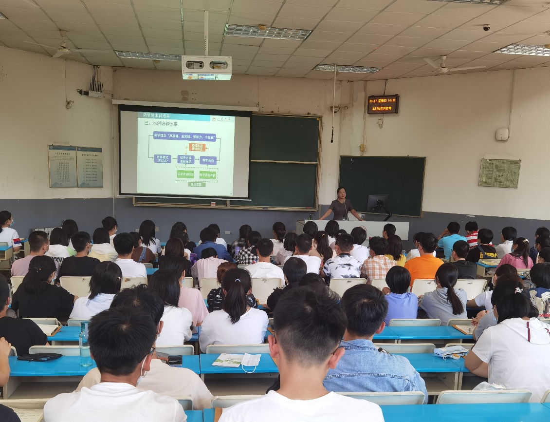 强化学风建设,培养优良院风。张娜经理在新生拓展培养讲座中提出了“强能力”、“重基础”、“厚实践”的三段式培养模式,并对同学们给予厚望,期待同学们能够成长为一名足以面对各种情况的精英。王海钠教授向同学们介绍了学院的专业生活,补充了有关课程与实验的相关内容,并鼓励同学们积极参与学习与实践活动,尽快融入老员工活。董芹老师结合各类实验室事故案例,通过数据分析归类,为同学们总结了实验室“两救四不”的原则。三位老师的讲话极具激励性,大大提高了同学们学习的积极性,加快了同学们适应校园的步伐。