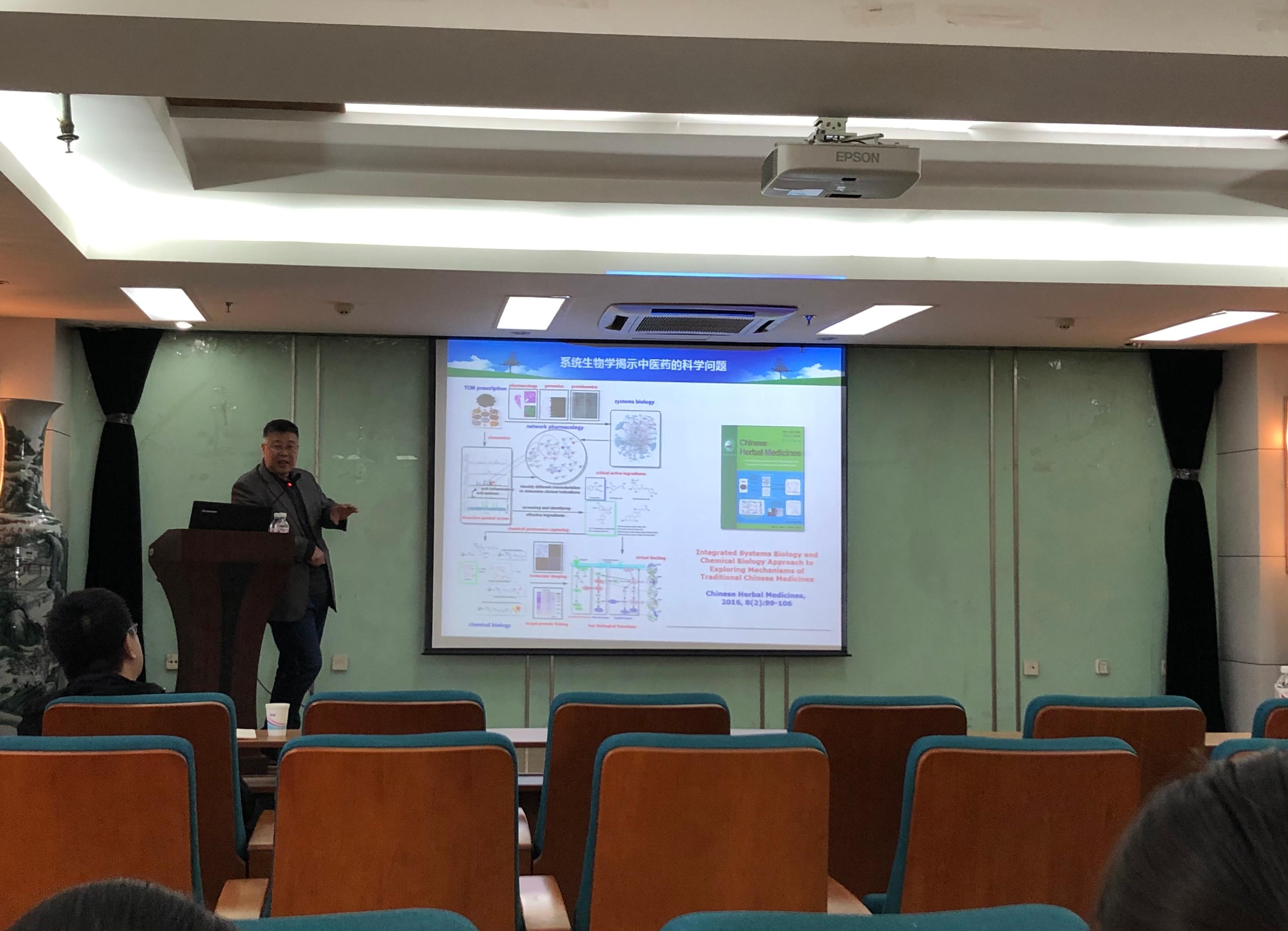 白钢教授从中西医治疗疾病的区别切入,介绍了系统生物学的概念以及现代多组学在中医药中的应用,详细地讲解了从系统生物学到化员工物学完整的研究路径和多种方法,包括蛋白靶点的通路验证与评价技术,药效成分的发现及鉴别等技术,以及探针的制备和示踪技术,并提供了从中医药到现代生物学的研究思路。此外,白教授还介绍了研究团队一些新的研究进展,如“治疗消渴症多种中药的作用机制”,“基于胰岛素通路相关靶点的成分与靶点的虚拟对接研究”,“黄芩素降糖的化员工物学研究”和“甘草次酸改善胰岛素抵抗的潜在靶点研究”,最后,将对中医传统智慧的科学研究成果实际应用到现代健康产品的开发。在问题交流环节,老师和同学们进行了深入的学术探讨,白教授耐心地解答了同学们的问题,师生们感到受益匪浅。
