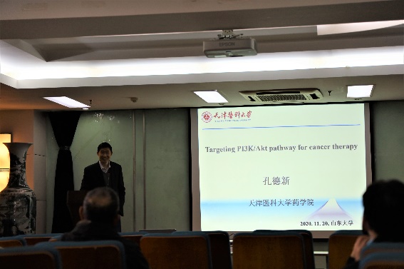 11月20日下午,由伟德国际1946官网主办的“2020伟德BEVlCTOR1946博士研究生高端学术讲坛”在科研楼五层报告厅顺利举办,本次讲坛以 “靶向PI3K/AKT通路的抗肿瘤药物研究”为主题。天津医科大学特聘教授孔德新担任主讲人。讲坛由伟德国际1946官网郭秀丽教授主持。