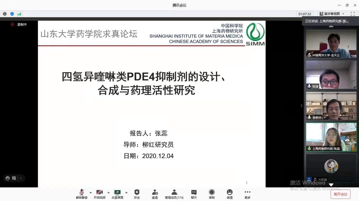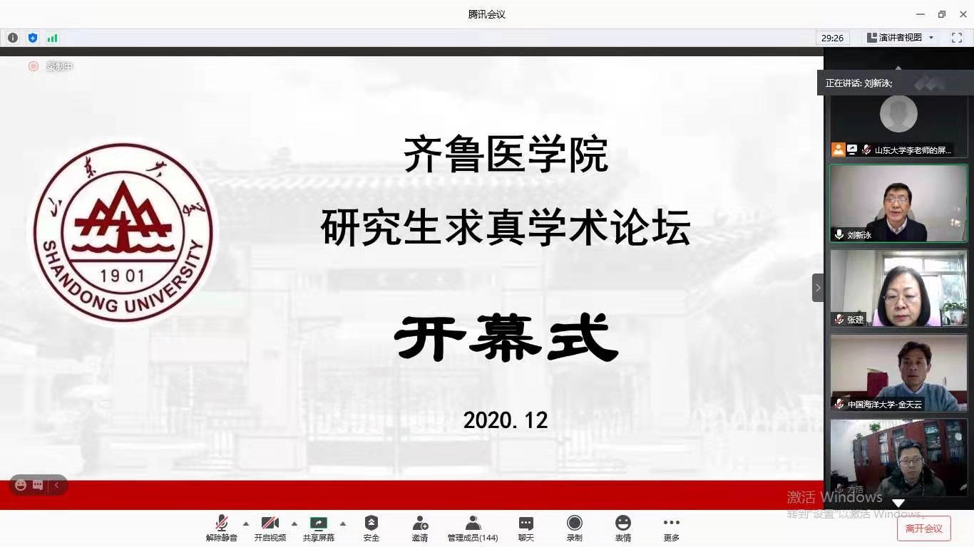 12月4日-5日,伟德国际1946官网成功举办齐鲁医学院研究生求真学术论坛(药学学科),论坛活动采用线上方式举行。来自清华大学、中国科学院上海药物研究所、复旦大学、南开大学、中山大学、中国海洋大学、马斯特里赫特大学、中国科学技术大学、中国海洋大学的10名博士研究生和伟德国际1946官网的8名博士研究生应邀作专题学术报告。