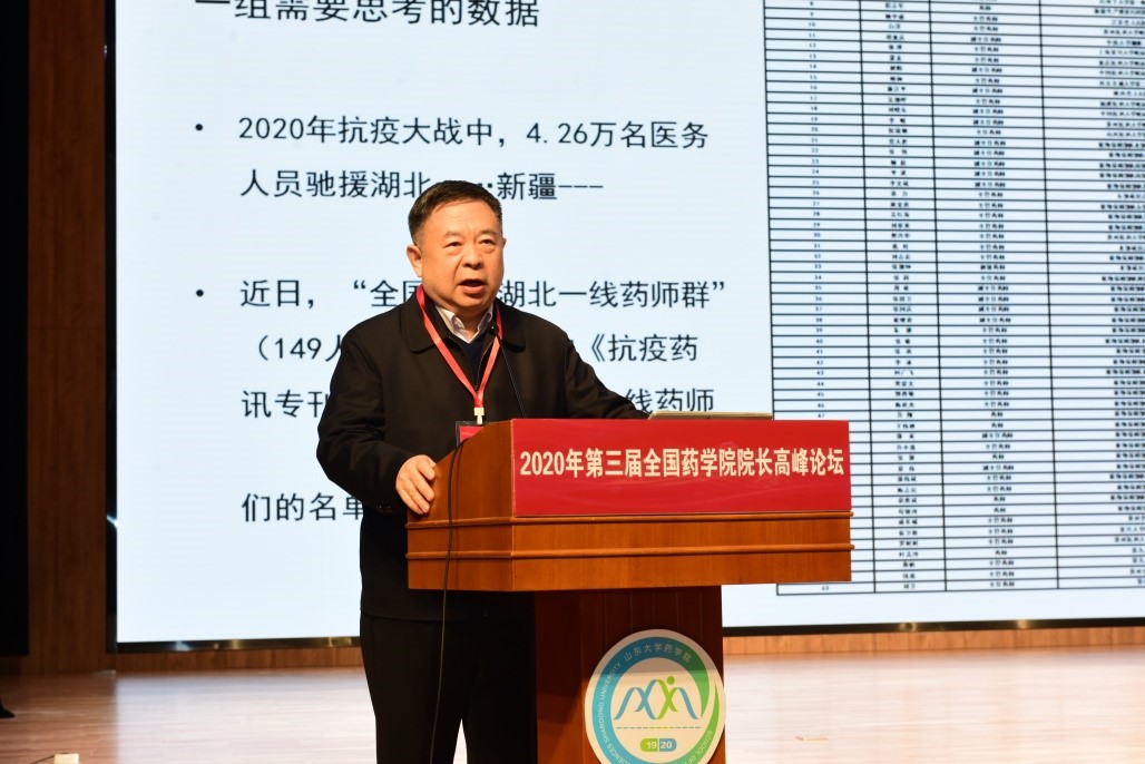 姚文兵以“医学教育改革背景之下药学教育和人才培养的思考”为题,从我国在应对新冠肺炎疫情过程中反映出的医药脱节,原研药创新不足,创新性药学人才培养短缺等问题入手,提出“懂医精药”“慢病善管”新的要求。他进一步分析了我国目前医药类人才培养模式与未来的发展趋势,对如何培养拔尖创新药学人才进行了深入的剖析和探讨。