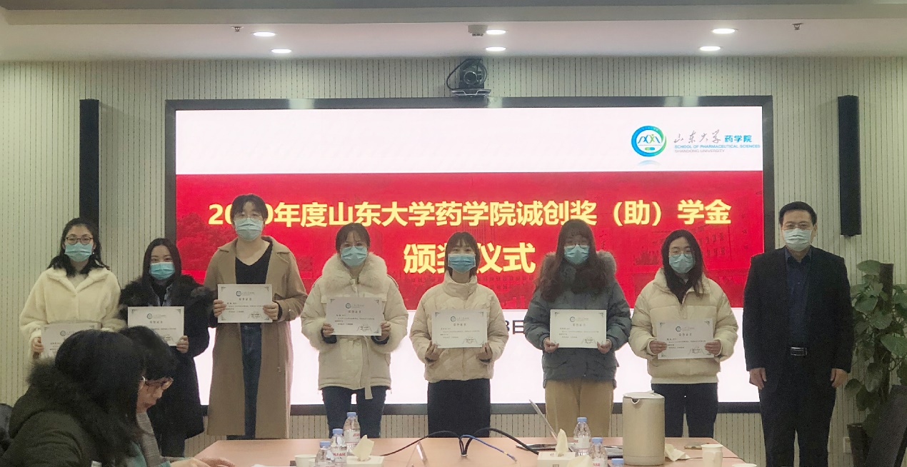 1月8日,伟德国际1946官网诚创奖(助)学金颁奖仪式在趵突泉校区举行。山东诚创医药技术开发有限公司副董事长吕志涛、人事总监于小颖、综合部部长李金凤,公司党委书记王秋生、党委副书记王巍巍出席颁奖仪式,为本次获得奖、助学金的25名同学颁发证书。颁奖活动由伟德国际1946官网学工办主任、团委书记李冬主持。