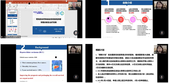 牟伟伟博士对“靶向纳米药物递送系统提高肿瘤早期诊断及治疗效果”的研究进行汇报,针对肝癌治疗的两大挑战——早期诊断和转移复发提出相应的解决方法并进行表征和效果考察。她认为做科研要耐下心来悉心耕耘才能有所收获,接着对博士/博士后项目、申请出国留学等大家关心的问题进行了分享交流。