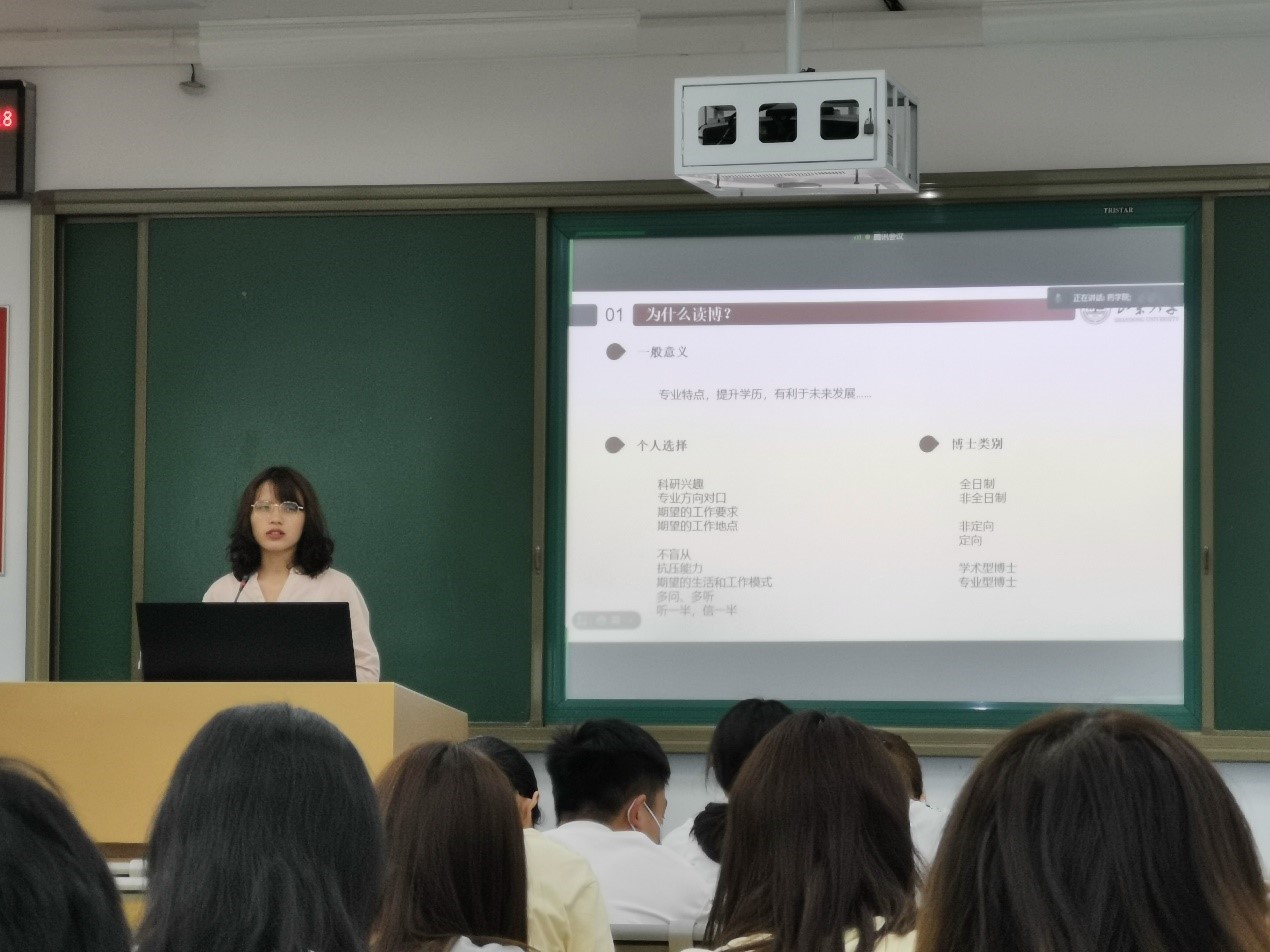 吴玢祺,毕业后将就职于哈尔滨市平房区卫生健康局,她首先从确定求职目标、搜集职位信息、面试技巧等方面做了分享,重点讲述了定向选调生的求职事宜,建议同学们要及时关注相关通知,保持积极乐观的心态,从容应对挑战。姚卜凡,分享了报考“申请-考核”制招收博士研究生的相关情况,建议有意继续深造的同学要提前做好规划,同时研究生期间要平衡好工作与生活,保持积极心态。魏超毕业后将就职烟台药物研究所,他针对药学专业硕士研究生不同就业方向进行了说明,建议同学们将在学期间取得的奖励证书总结为简历库,根据具体的工作需要,匹配合适的简历信息。初慧琪毕业后将就职于青岛市妇女儿童医院,她介绍报考医院等事业单位的注意事项以及药学毕业生可以选择的岗位,同时结合自身的面试经历,就面试流程、面试妆容、面试技巧做了交流分享。刘兰玲毕业后将就职于恒瑞医药股份有限公司,她提到研究生期间丰富的科研实习经历锻炼了自己工作能力,鼓励师弟师妹积极参加校园活动,社会实践,以增长才干,全面发展。
