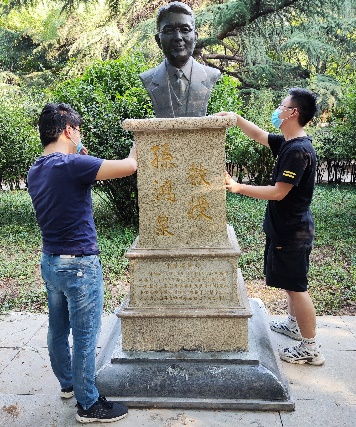 图14伟德国际1946官网毕业生自发组织擦拭趵突泉校区文物