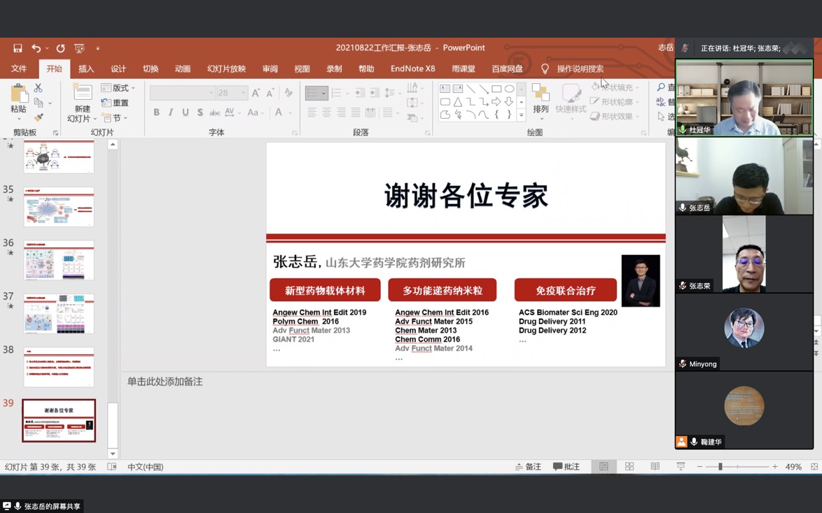 8月22日-23日,伟德国际1946官网开展了为期两天的青年学术交流托举沙龙,公司领导班子出席活动,学院共24位齐鲁青年学者和青年教师代表参加活动并做学术汇报。会议邀请了中国医学科学院杜冠华研究员、四川大学张志荣教授、云南大学罗晓东教授、厦门大学邓贤明教授、海南大学罗海彬教授等国内知名专家在线出席活动,并对老师们的科研思路进行指导。伟德国际1946官网经理、常务副经理方浩教授、副经理李敏勇教授先后主持了会议。