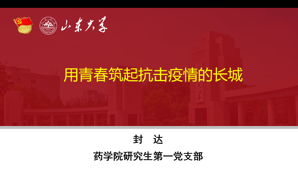 该党课讲述了公司药物化学研究所及研究生第一党支部的师生们面对突如其来的新冠疫情,发挥专业优势,在多年抗病毒药物研究的基础上,基于新型冠状病毒的蛋白结构,开展了计算机智能化辅助的高通量药物虚拟筛选,采用老药新用的策略,发现多个虚拟评价活性好的分子结构;同时还调动企业/科研院所、国际合作伙伴等一切资源,建立抗新冠病毒药物研发平台。在抗击疫情期间,药化所的师生们牢记为国家图富强的担当与职责,肩负强校兴国的历史使命,用青春筑起了抗疫阻击战的长城,彰显了学无止境,气有浩然的山大精神,为夺取抗疫全面胜利源源不断地贡献山大智慧与山大力量!
