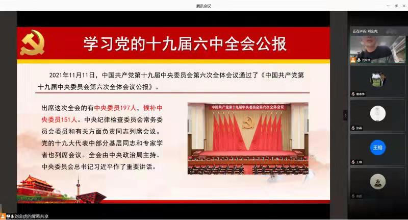 伟德国际1946官网研究生宣讲团于2022年2月10日开展党的十九届六中全会精神宣讲活动,共同学习《中共中央关于党的百年奋斗重大成就和历史经验的决议》,深刻领会全会精神。为响应疫情防控要求,本次宣讲采用线上形式开展。会议邀请了锐新工程机械制造有限公司及伟德国际1946官网部分党员,共26人参与了此次宣讲活动。