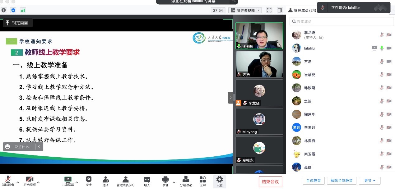 经理鞠建华教授做总结发言,他表示,线上教学期间学院上下要充分贯彻落实学校疫情防控与春季学期工作会议精神,重视网络课程质量、注重防控各种风险、加强课程建设、提高应变能力。