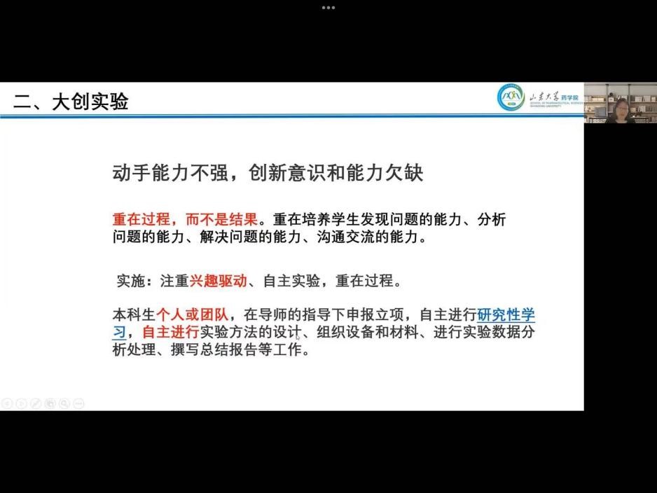 会上,沈涛从自身经历出发,与同学们分享历年学院招收研究生相关事宜,从保研与考研两个角度为同学们提出中肯建议。他鼓励同学们努力学习,积极参加夏令营,争取拿到保研名额。刘秀美首先对同学们入学以来的学习成绩进行分析,鼓励成绩不理想的同学不要气馁。她强调,学校封闭管理期间,同学们应该依靠可回放、随时提问两大优势高效率上好线上课堂,并通过勤看笔记、课件、教材和回放,高效率做好考前复习。随后,刘秀美根据同学们进入实验室情况,重点讲解大创实验相关问题。她指出,本科生参与大创实验是为了培养发现问题、分析问题、解决问题的能力,不应该只关注结果。