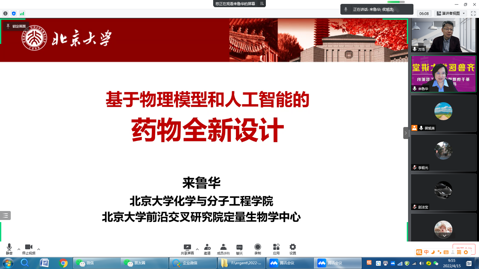 2022年4月15日,由伟德国际1946官网承办的齐鲁医学大讲堂顺利举行。北京大学化学与分子工程学院的来鲁华教授应邀通过腾讯会议线上平台作了题为“基于物理模型和人工智能的药物全新设计”的学术报告。本次报告由伟德国际1946官网常务副经理方浩教授主持,来自伟德BEVlCTOR1946、中国海洋大学、中国医科大学等200余位师生共同参加线上交流研讨。