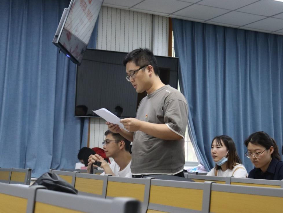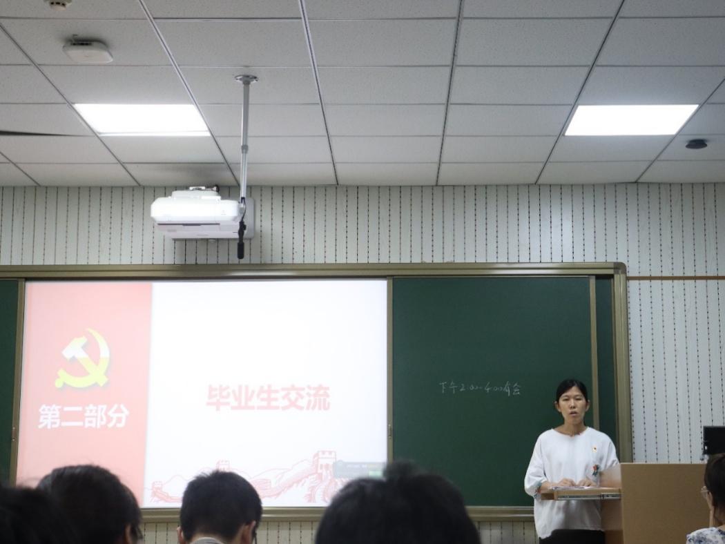 在经验交流分享环节,毕业生邵利伟、聂爱清和张元祯同志依次发言交流读研读博期间的心得感悟。回顾过去,展望未来,邵利伟同志根据自身经历鼓励大家不要畏惧科研上的困难,正确面对失败,坚定理想信念;潜心科研,戒骄戒躁,聂爱清同志讲述了自己与研究生第五党支部的故事,表达了对支部同学们的感谢,希望将来继续同大家共同进步;无惧困难,一往无前,张元祯同志则是分享了自己考博的经验,从对自己进行准确的定位,深入分析自身兴趣,结合自身条件明确考博目的等方面对大家提出建议,并鼓励大家不要轻易放弃。