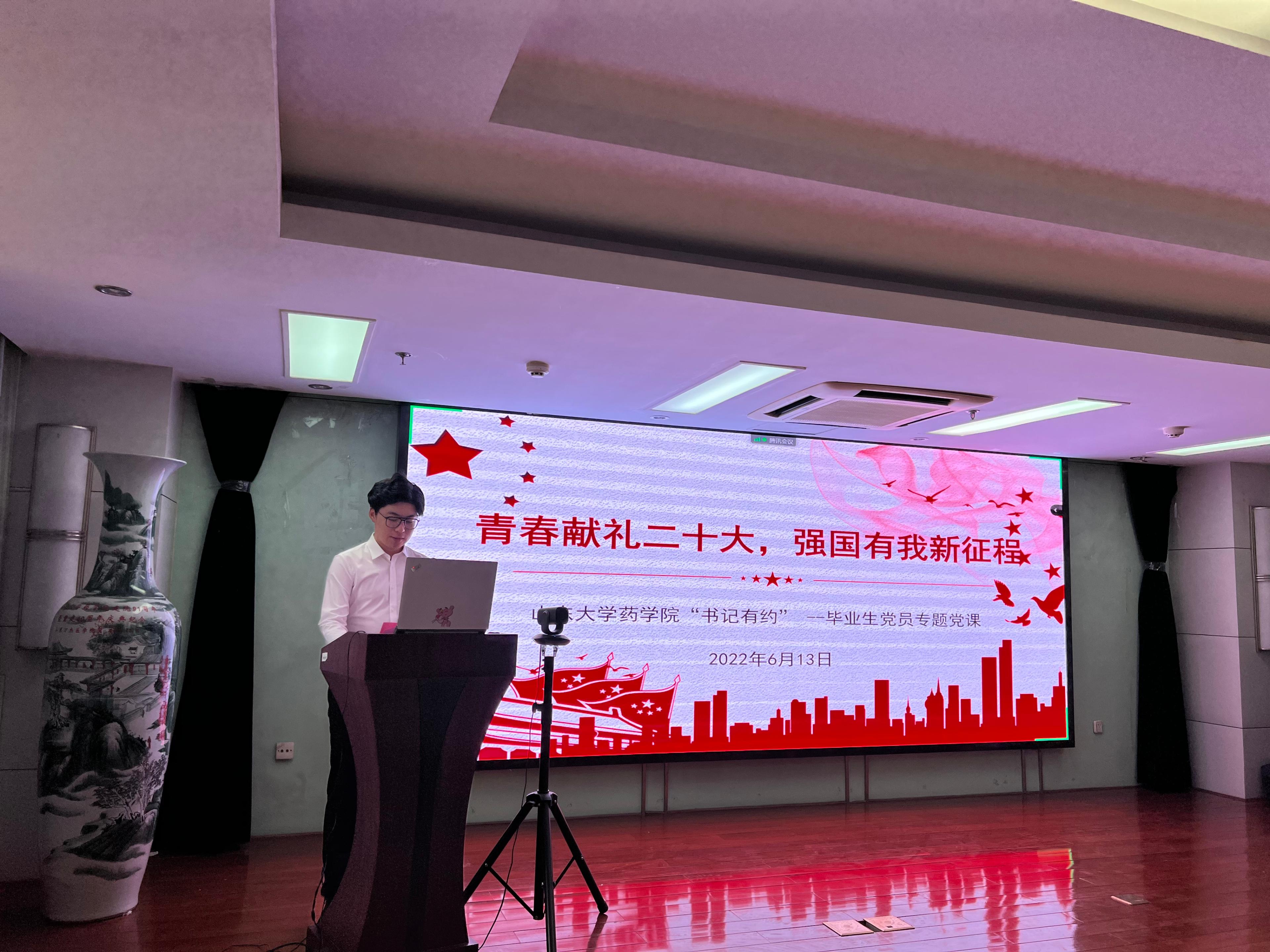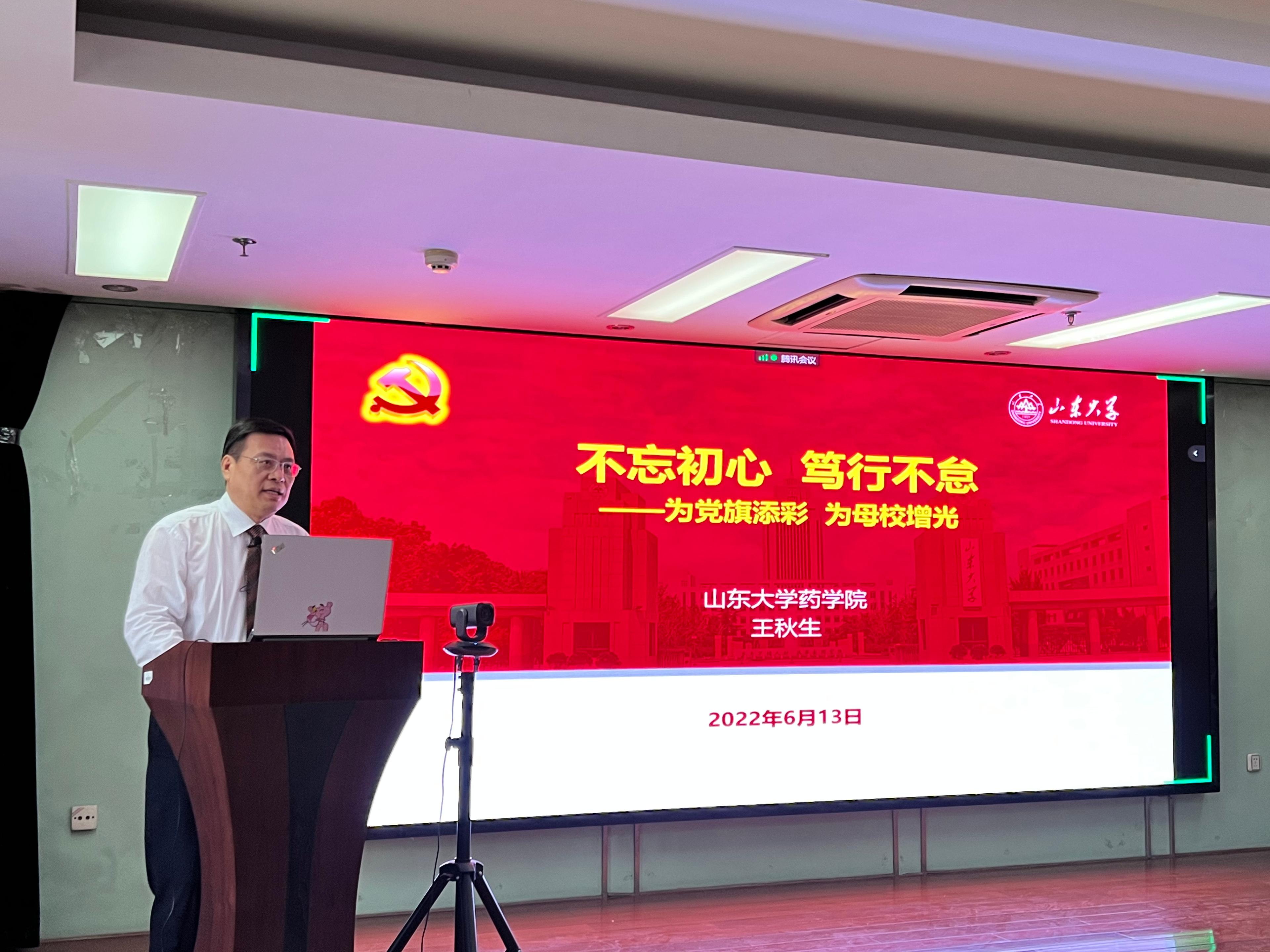 王秋生为全体毕业生党员作“不忘初心,笃行不怠—为党旗添彩,为母校增光”2022届毕业生专题党课,讲述了中国共产党发展历程中的代表性事件,深化了毕业生党员们对党史的认识,希望毕业生党员们体会中国共产党人精神谱系,坚定理想信念,为党旗添彩;向毕业生党员们讲述伟德BEVlCTOR1946校史和伟德国际1946官网院史的红色基因传承,希望毕业生党员们知校荣校,牢记山大人、医学人的初心,努力增强自身专业本领,为祖国药学事业贡献力量,书写精彩人生,为母校增光。