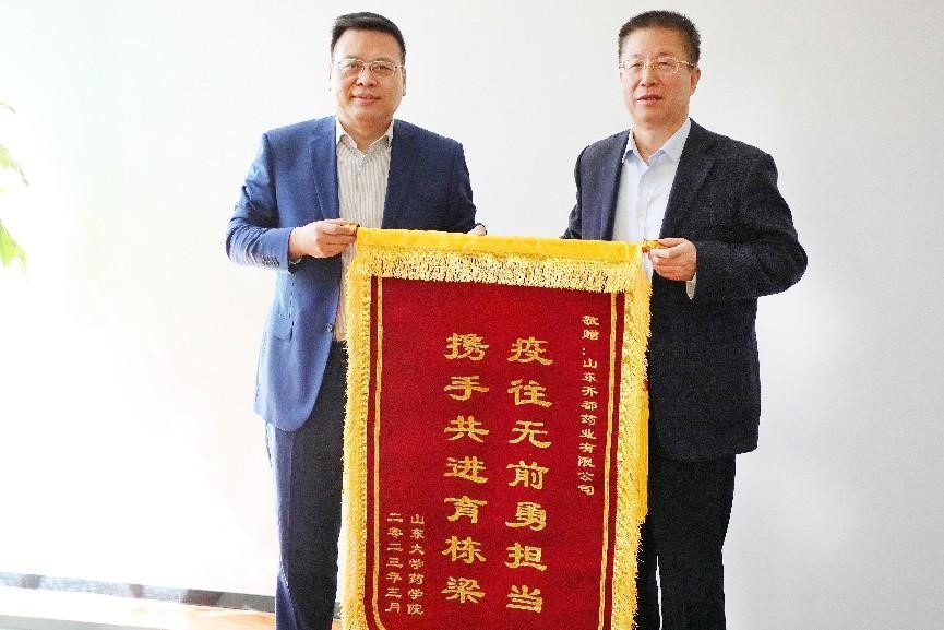 王秋生对齐都药业长期以来给予学院的关心支持和帮助,特别是在疫情期间多次雪中送炭捐赠防疫物资表示感谢,并向企业赠送锦旗。他用“心心相印的好朋友”、“情同手足的好兄弟”、“携手共进的好伙伴”生动地阐释了齐都药业和伟德国际1946官网的深厚友谊。在讲话中,他强调双方要以校企党建共建为引领进一步深化战略合作,打造合作新品牌。一要聚焦企业需求,共同推进创新型转化;二要加强创新人才培养,为药学事业输送高素质人才;三要发挥医药行业员工会优势,拓展合作资源和空间。