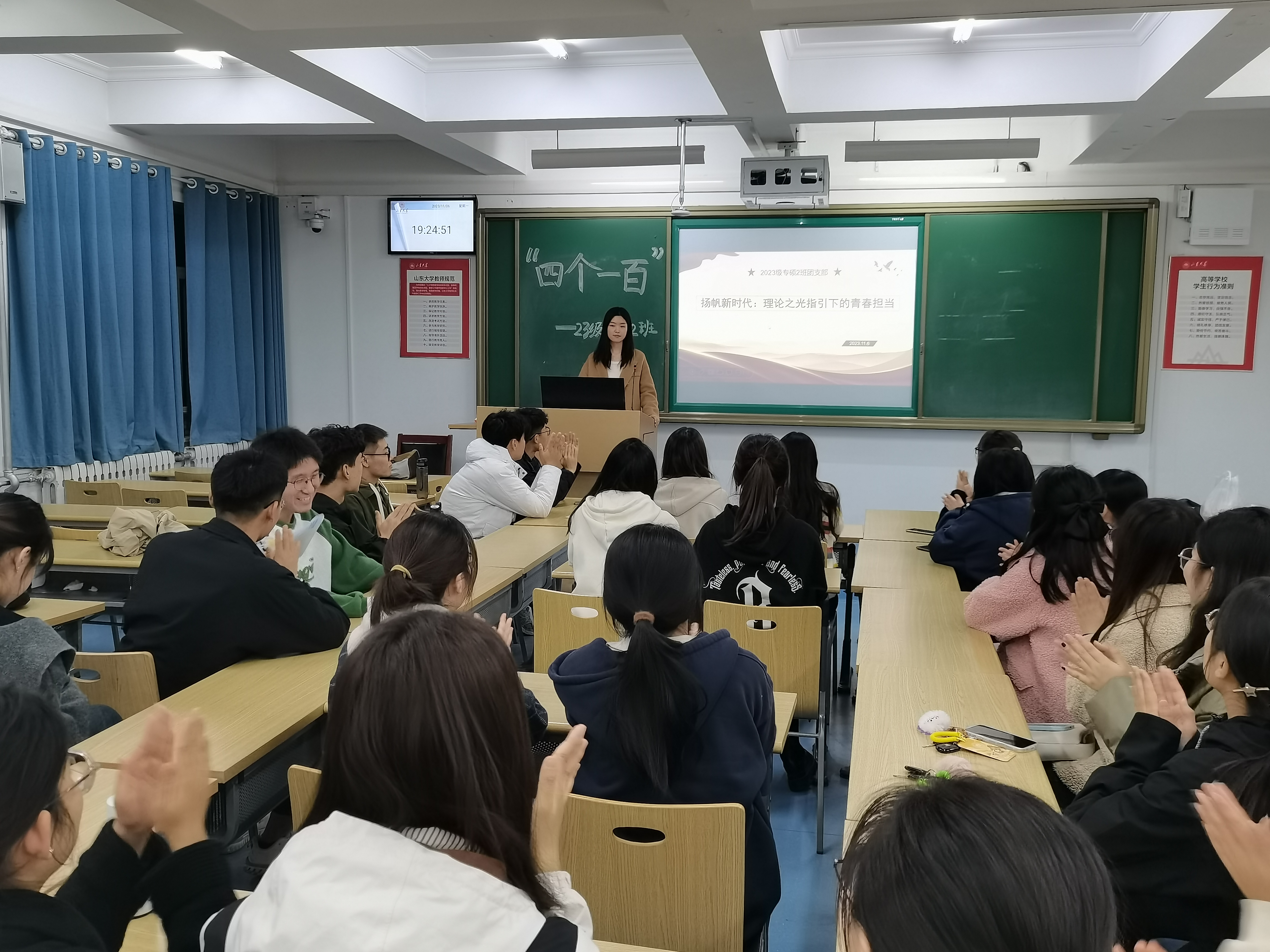 以学铸魂,描绘思想认识“同心圆”。各团支部积极开展理论学习活动,坚持读原著、学原文、悟原理,筑牢青年政治信仰。2023级专硕1班团支部带领同学们围绕“思想旗帜”“坚强核心”“强国复兴”“挺膺担当”四个专题开展理论学习,进行分组讨论与总结。2023级专硕2班团支部以“扬帆新时代:理论之光指引下的青春担当”为主题进行理论学习,从“思想引领启航程”“核心力量筑未来”“强国之路勇担当”“挺膺前行筑梦行”四个模块进行学习讨论,使同学们在“学”的基础上,进行了“思”的延伸。