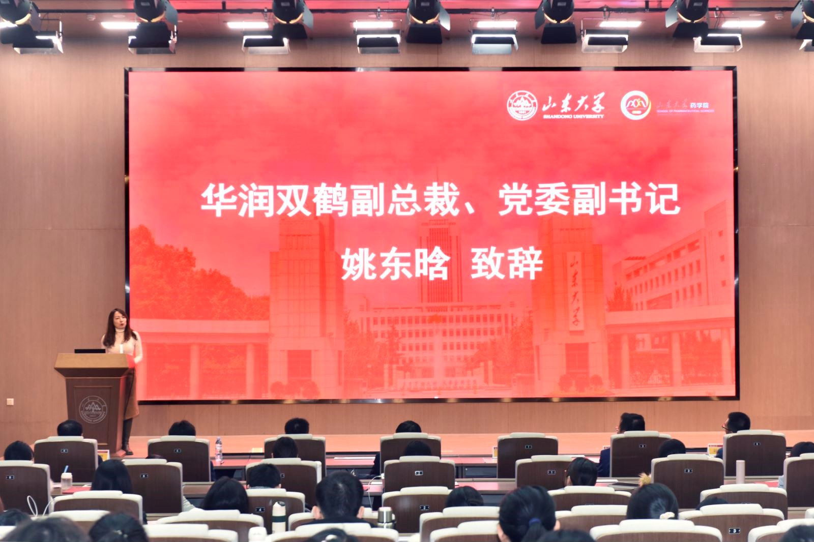 姚东晗介绍了华润集团及华润双鹤的历史背景、目前企业经营情况以及企业科技人才培养方式等。她鼓励同学们当下为未来职业生涯发展打下良好基础,找到自我市场价值。她表示,欢迎更多的山大伟德国际1946官网学子加入华润双鹤。