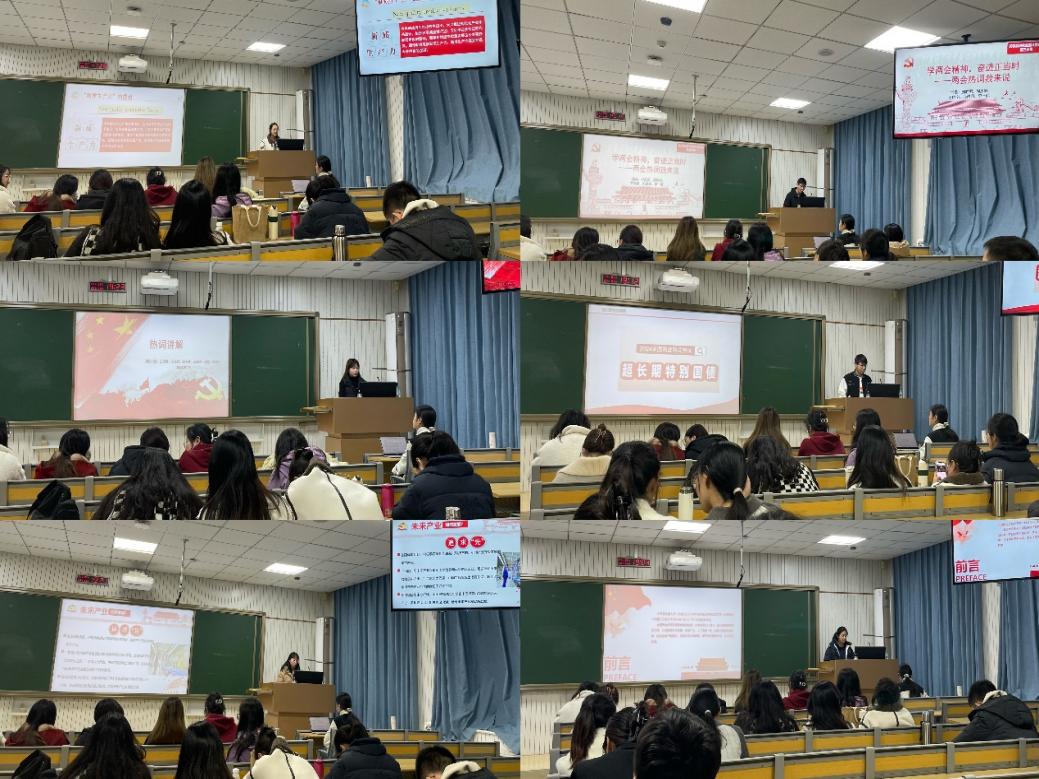支部书记张荻以2024年全国两会精神为主题讲专题党课,并结合专业特点及工作实际,鼓励支部党员自觉将自身奋斗目标对标到党和国家重大战略需求上,为高水平科技自立自强贡献山大力量。随后,支部党员讲述“新词热词微党课”。党员准备充分,讲解内容丰富,采用图文、视频等多种形式生动讲解了“新质生产力”“人工智能+”“放心消费行动”“房地产发展新模式”“未来产业”“高效办成一件事”“宏观政策取向一致性”“美丽中国先行区”“新三样”“超长期特别国债”等新词热词。最后,支部结合政府工作报告、党的二十大报告以及习近平总书记重要讲话,选取50个理论热词,开展“你来比划我来猜”活动,以小组为单位进行竞赛,通过活泼的形式加深理论学习成效。